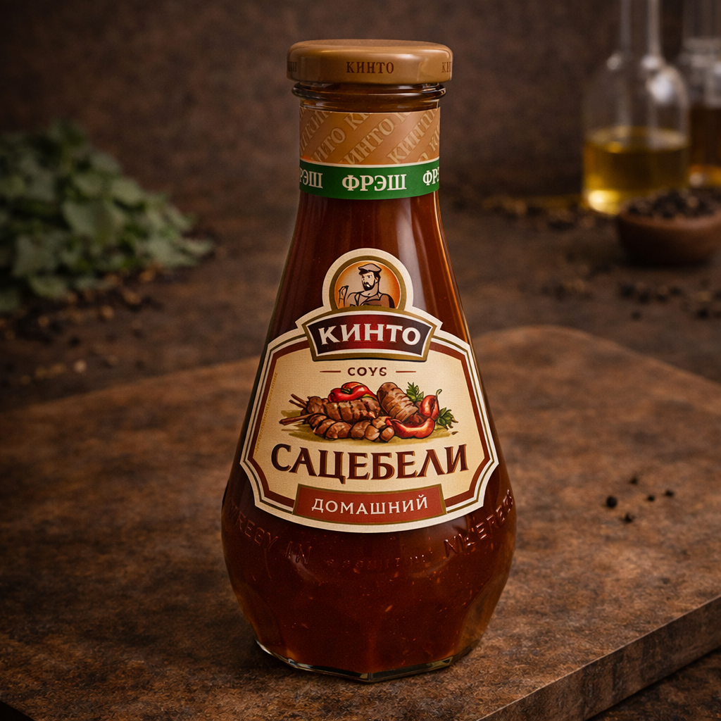 Томатный умеренно-острый соус Кинто "Сацебели домашний" изготовлен по оригинальной рецептуре из томатной пасты и сладкого перца с добавлением свежей пряной зелени. Обладает гармоничным вкусом и ароматом, идеально подходит к блюдам из мяса, птицы, макаронных изделий. Не содержит ГМО, консервантов, загустителей и красителей.